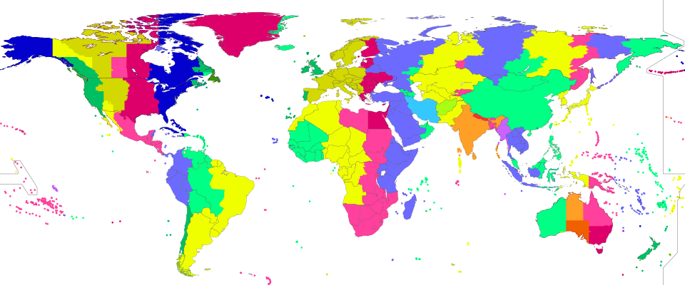 All nations currently use standard time zones for secular purposes, but not all of them apply the concept as originally conceived. Several countries and subdivisions use half-hour or quarter-hour deviations from standard time. Some countries, such as China and India, use a single time zone even though the extent of their territory far exceeds the ideal 15° of longitude for one hour; other countries, such as Spain and Argentina, use standard hour-based offsets, but not necessarily those that would be determined by their geographical location. The consequences, in some areas, can affect the lives of local citizens, and in extreme cases contribute to larger political issues, such as in the western reaches of China.[24] In Russia, which has 11 time zones, two time zones were removed in 2010[25][26] (one year before the daylight saving time would be observed all year round on March 27 of the following year) and reinstated in 2014 (when the country transferred from daylight saving time or summer time back to standard time or winter time permanently).[27]